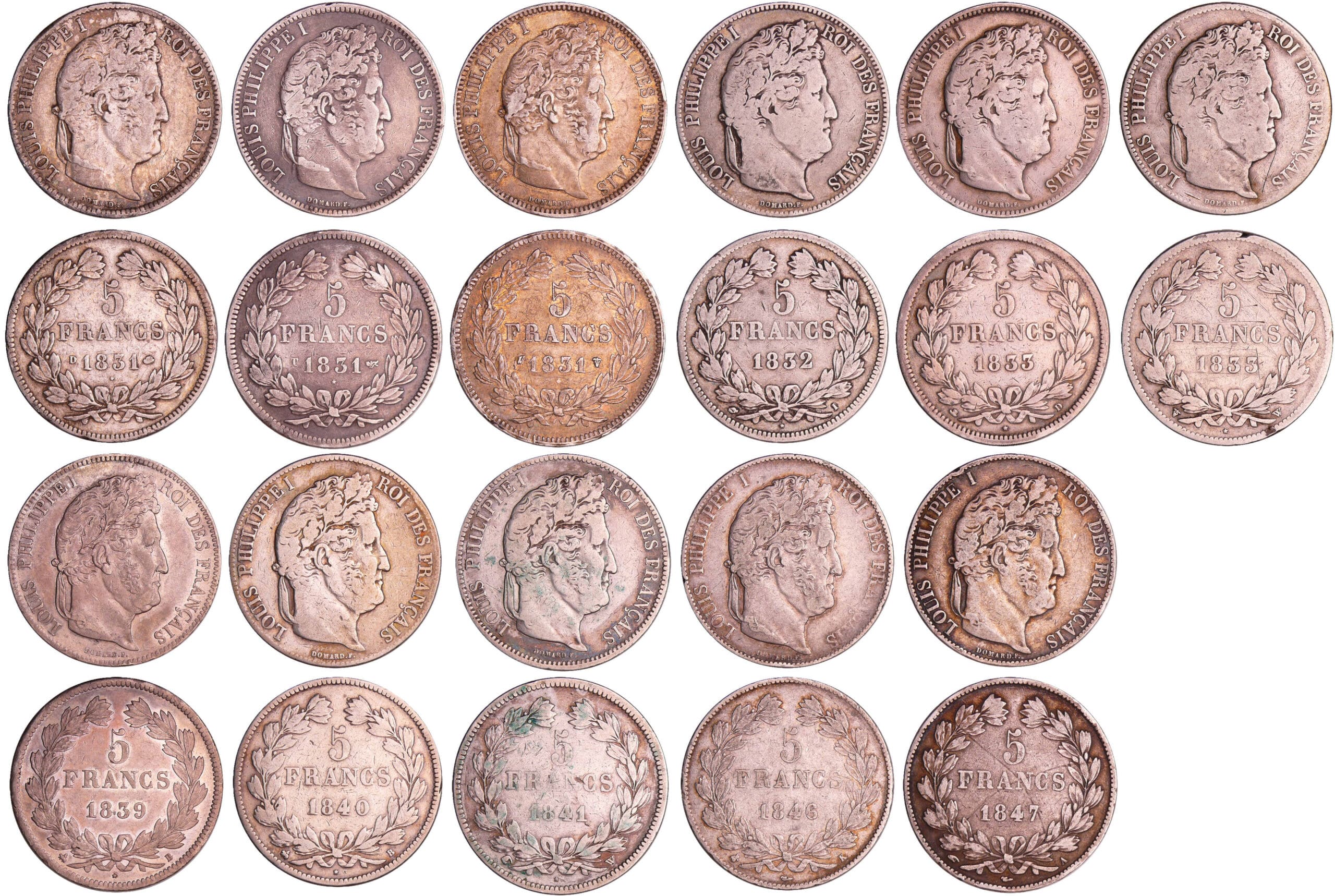 Louis-Philippe Ier (1830-1848) – 11 monnaies de 5 francs tête laurée