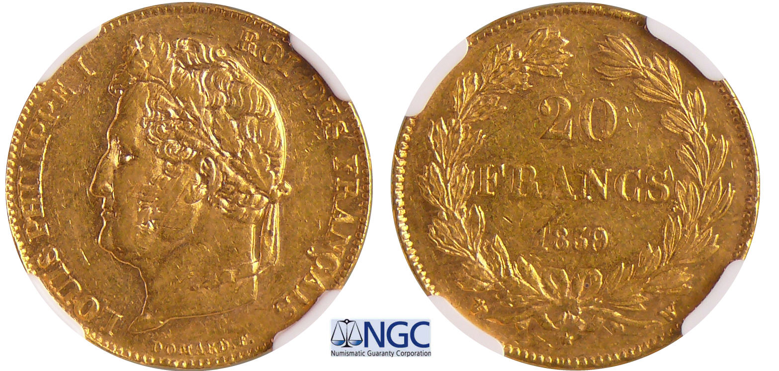 / Louis-Philippe Ier (1830-1848) – 20 francs tête laurée 1839 W (Lille)
