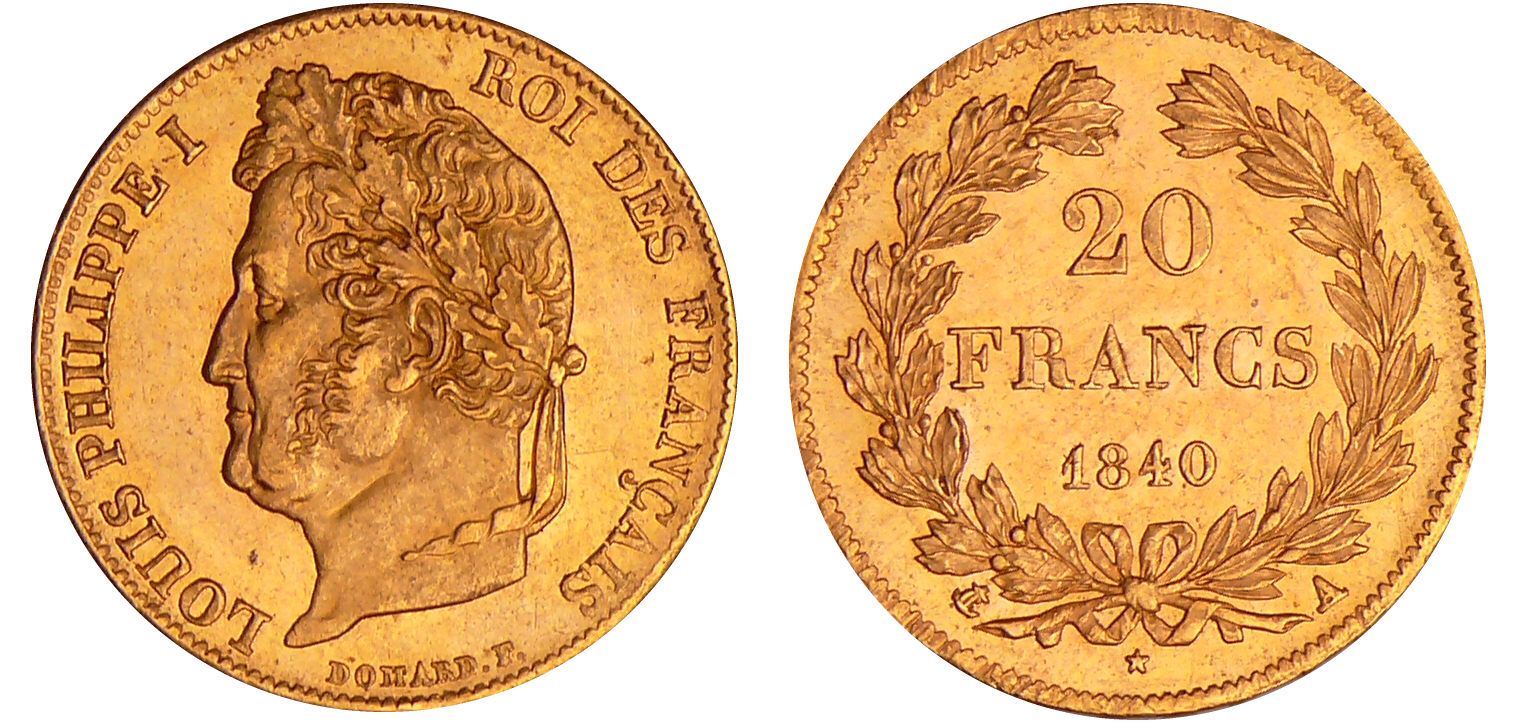 Louis-Philippe Ier (1830-1848) – 20 francs tête laurée 1840 A (Paris)