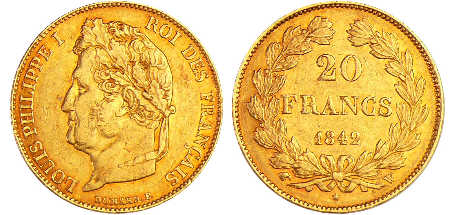 / Louis-Philippe Ier (1830-1848) – 20 francs tête laurée 1842 W (Lille)
