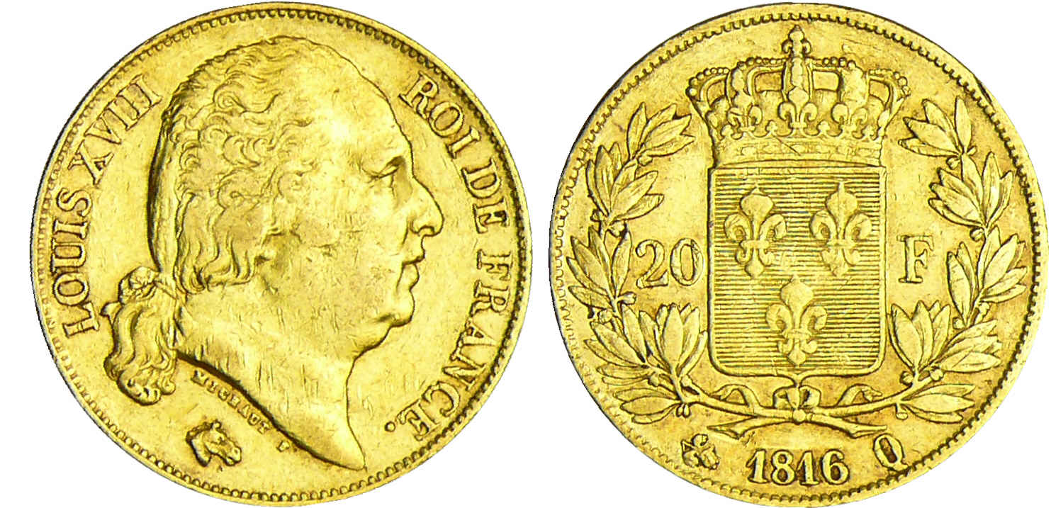 Louis XVIII (1815-1824) – 20 francs buste nu 1816 Q (Perpignan)