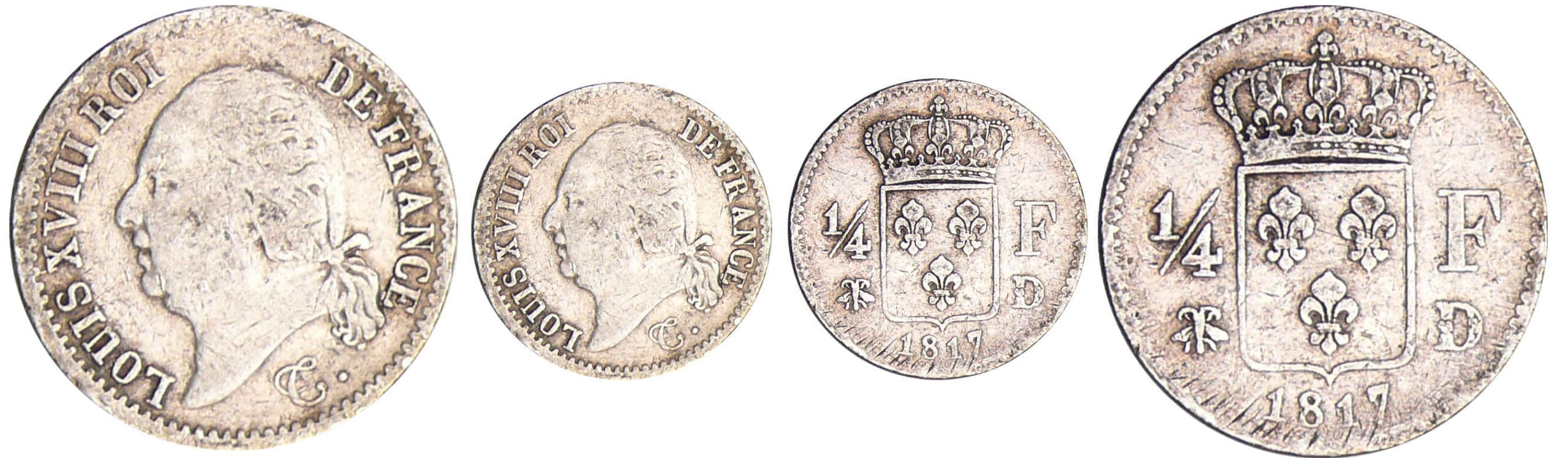 / Louis XVIII (1815-1824) – 1/4 de franc Louis XVIII au buste nu 1817 D (Lyon)