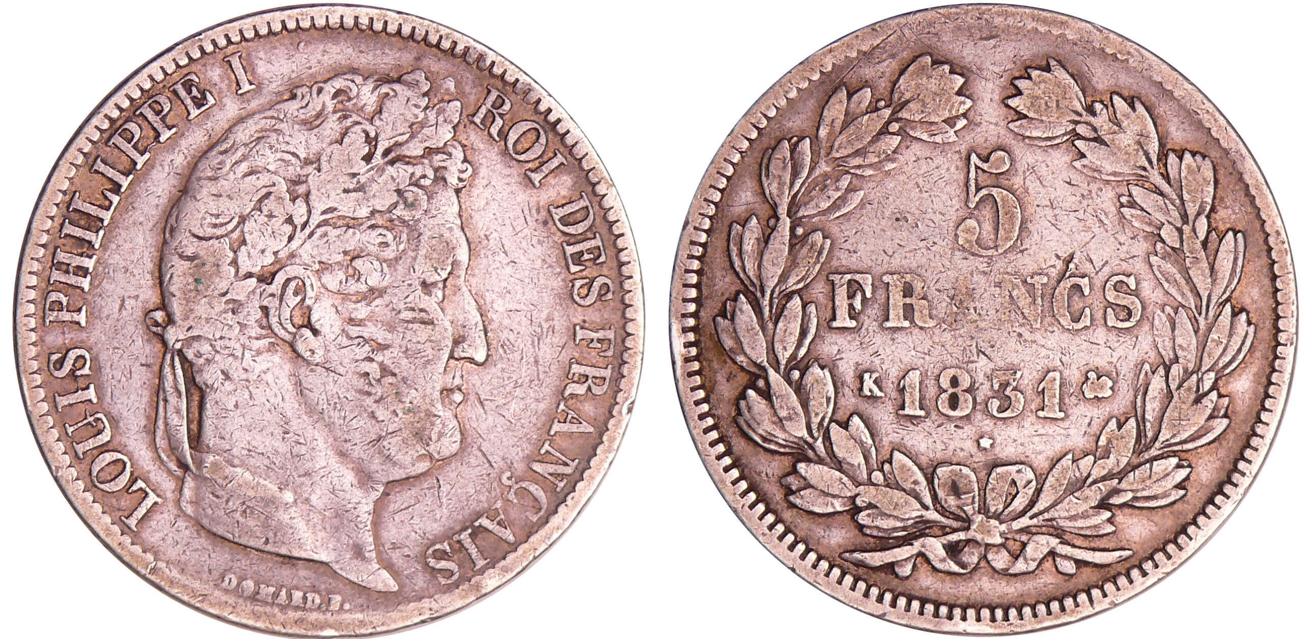 / Louis-Philippe Ier (1830-1848) – 5 francs tête laurée 1er type tranche en creux 1831 K (Bordeaux)