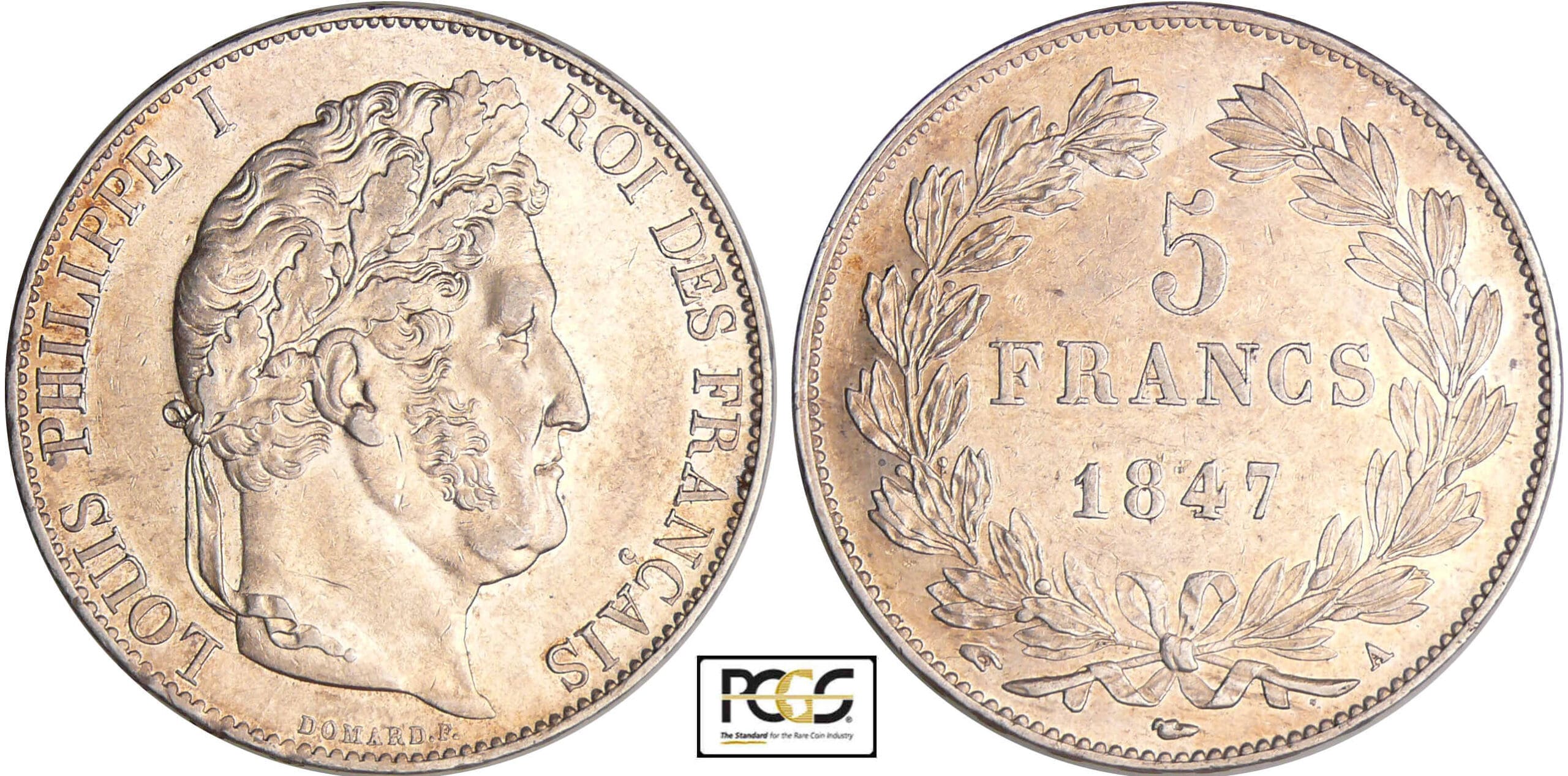 / Louis-Philippe Ier (1830-1848) – 5 francs tête laurée 3ème type 1847 A (Paris)