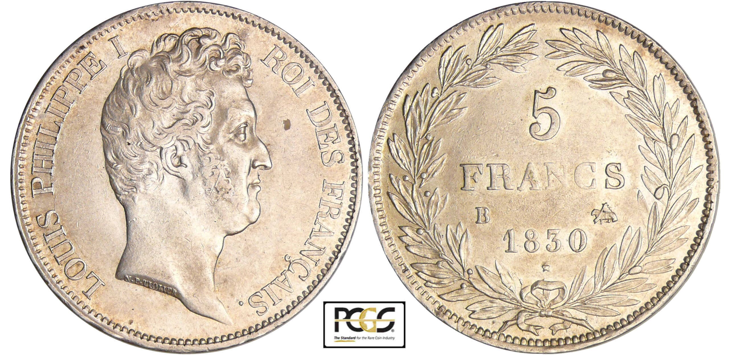 / Louis-Philippe Ier (1830-1848) – 5 francs tête nue tranche en creux 1830 B (Rouen)
