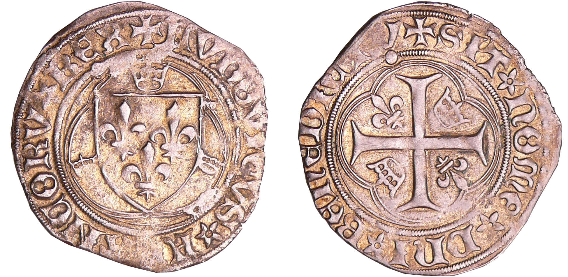 A/ + LVDOVICVS* FRAnCORV* REX. Ecu de France entre trois couronnelles, dans un double trilobe.
