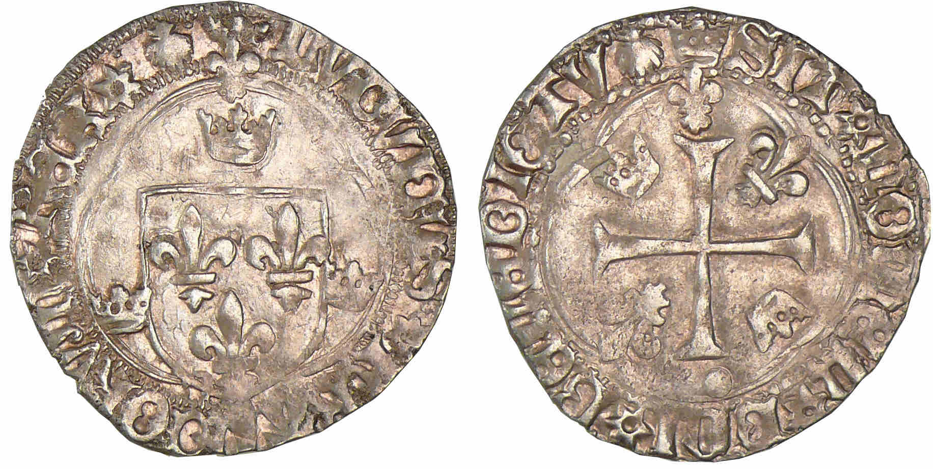 A/ + LVDOVICVS* FRANCORVM* REX. Ecu de France entre trois couronnelles dans un trilobe.