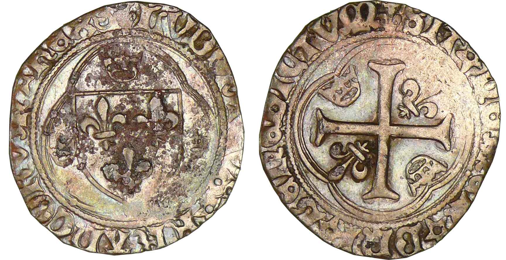 A/ + LVDOVICVS* FRANCORVM* REX. Ecu de France entre trois couronnelles dans un trilobe.