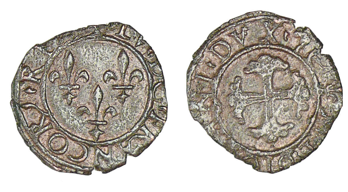 A/ (lis) LV D G FRANCOR REX. Trois lis.