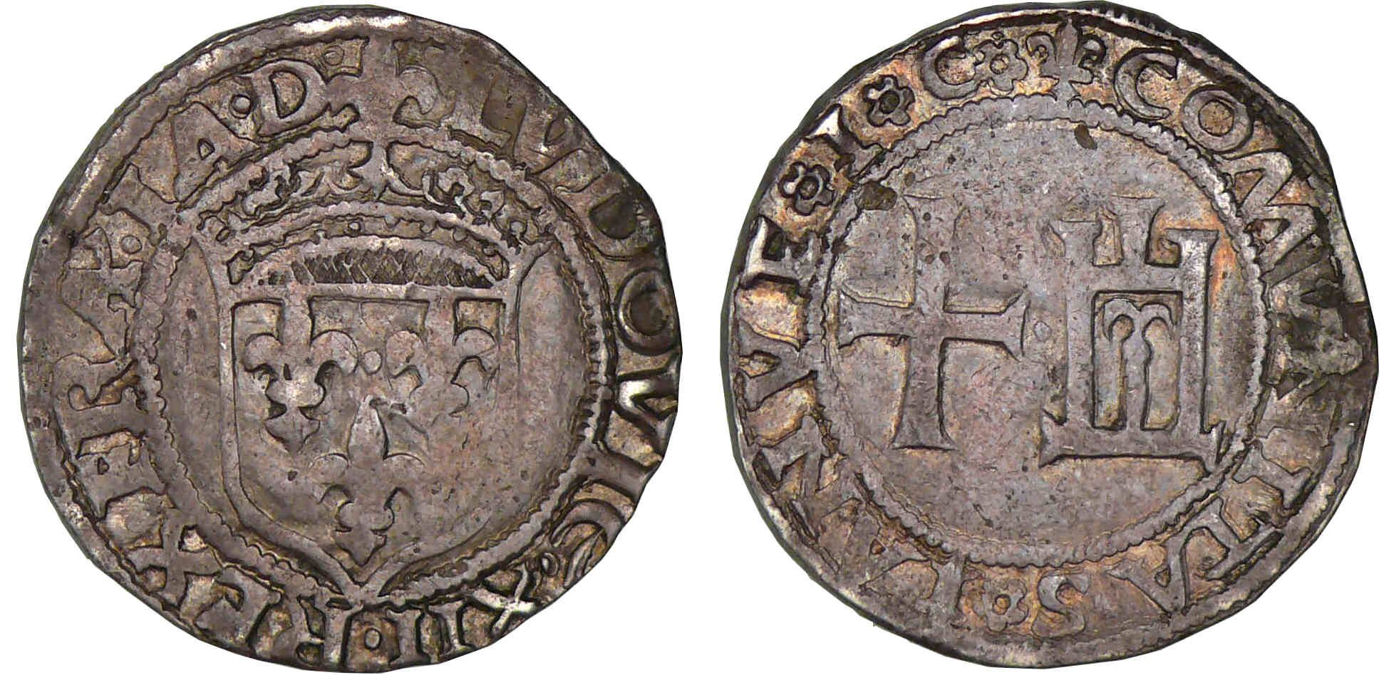 Avers : Louis XII (1498-1514). A/ (lis) LVDOVIC’ XII REX FRA’ IA D. Ecu de France couronné.