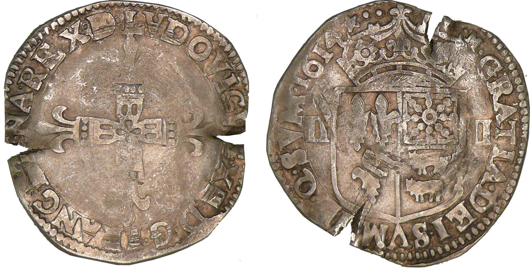 / Louis XIII (1610-1643) – ¼ d’écu de Béarn à la croix fleurdelisée – 1614 *M (Morlaàs)