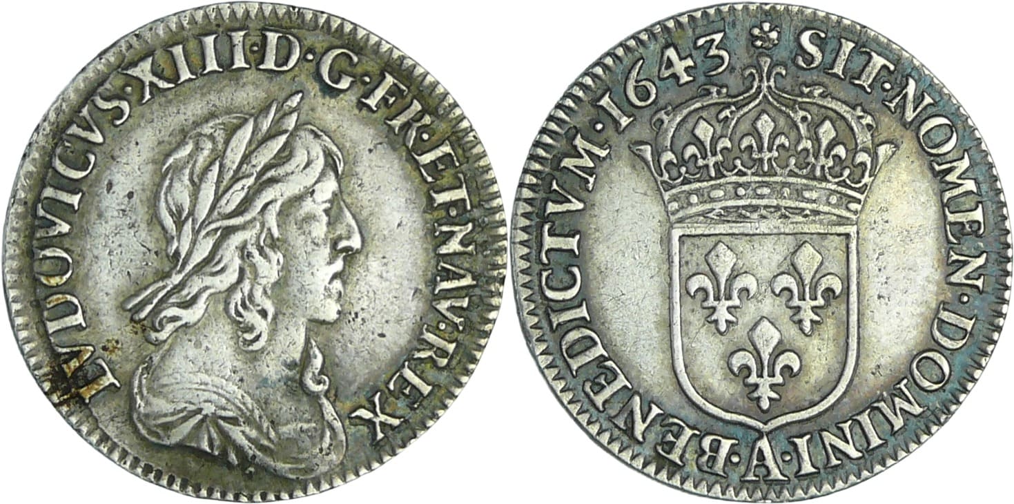 France – Louis XIII (1610-1643) – 1/12 d’écu du 2ème poinçon de Warin – 1643 A (Paris), Rose
