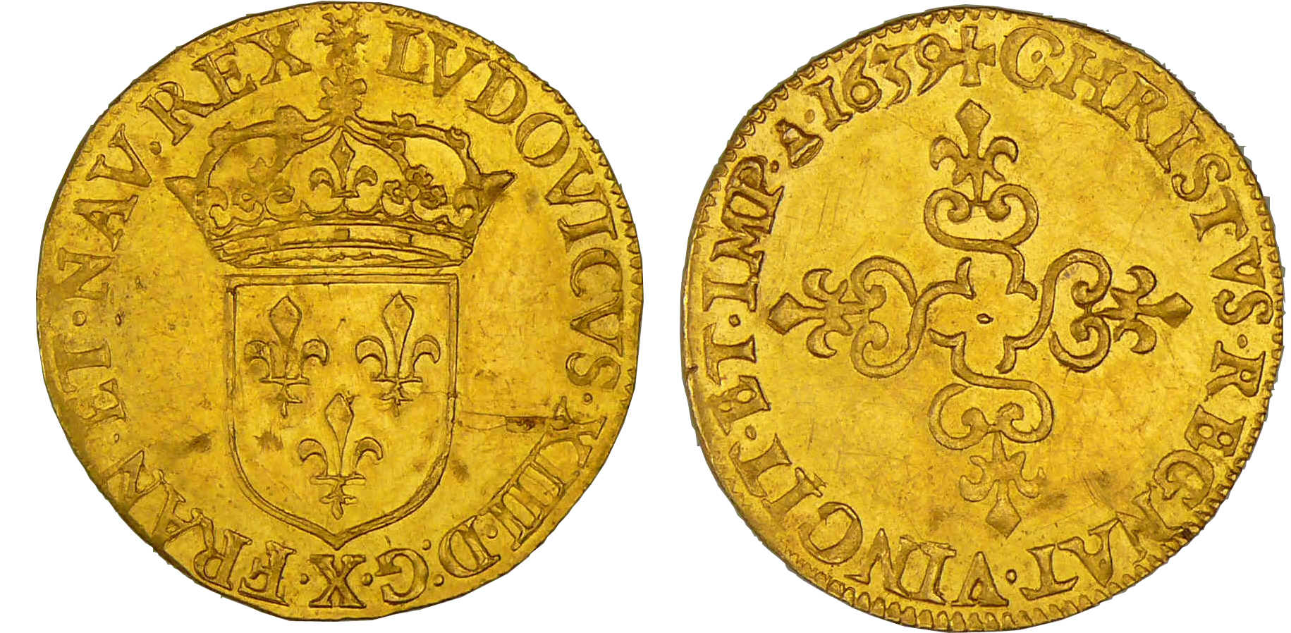 / Louis XIII (1610-1643) – Ecu d’or, frappe au marteau, type d’Amiens – 1639 X (Amiens)