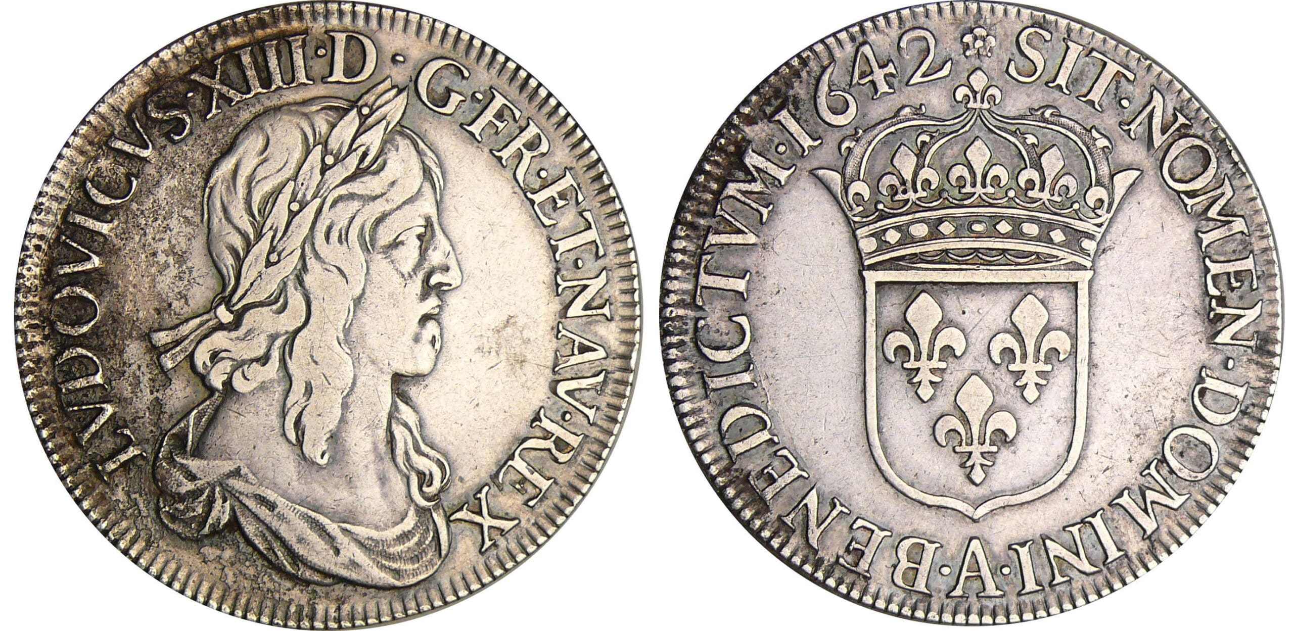 Louis XIII (1610-1643) – Ecu du 1er poinçon de Warin à la mèche étroite 1642 A (Paris)