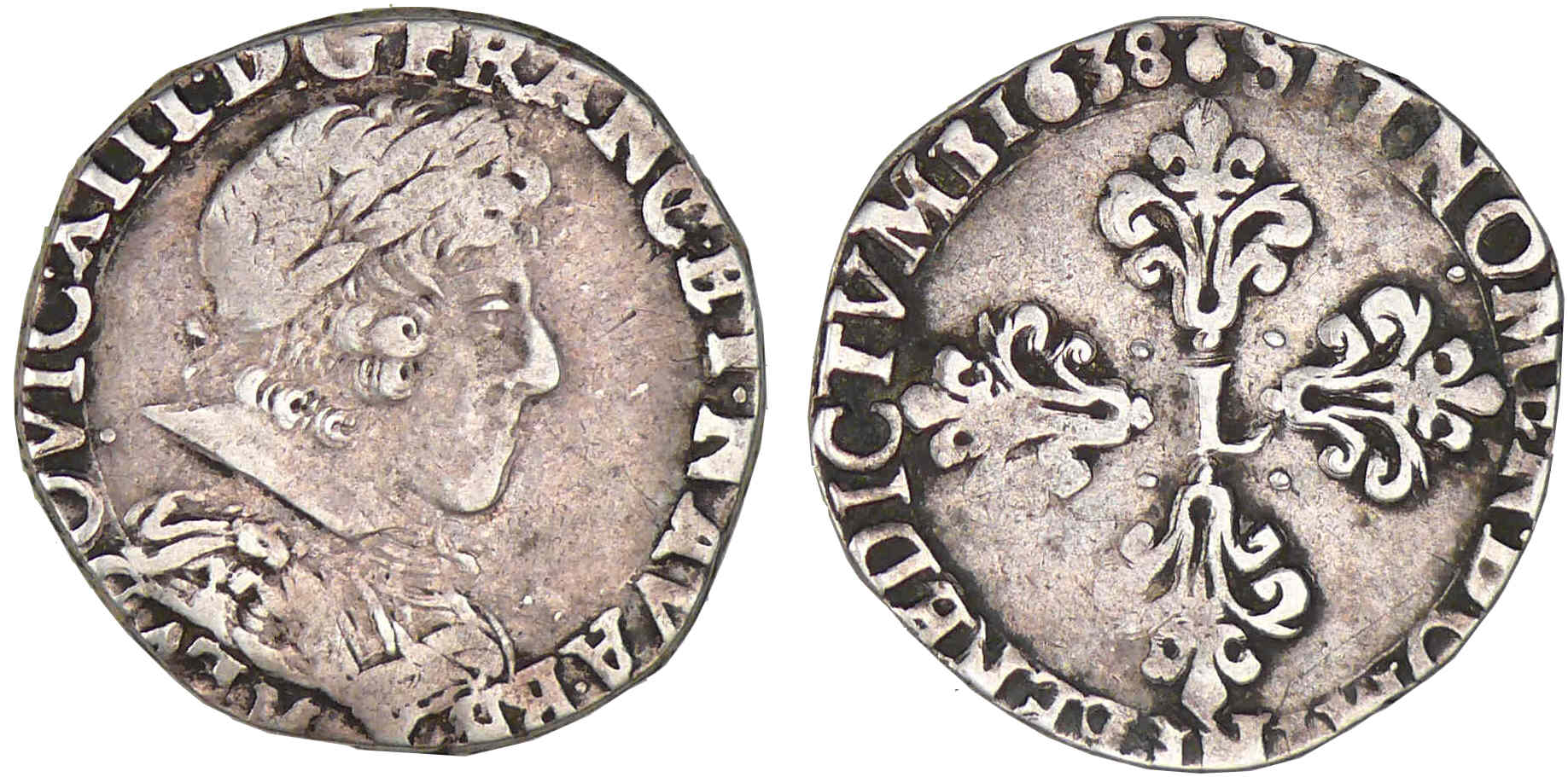 Louis XIII – Demi-franc au buste juvénil au col plat – 1638 M (Toulouse)