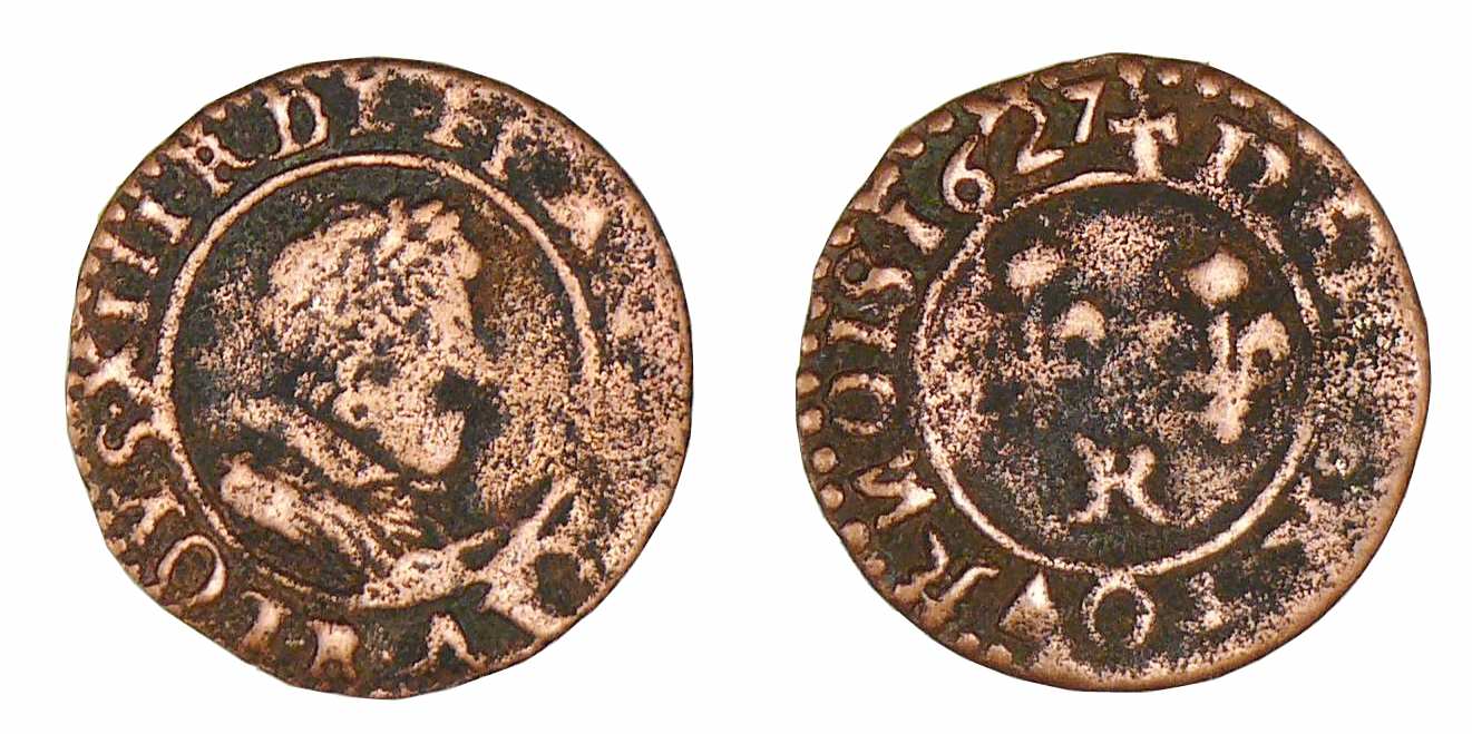 / Louis XIII – Denier tournois 1627 R (Villeneuve d’Avignon)