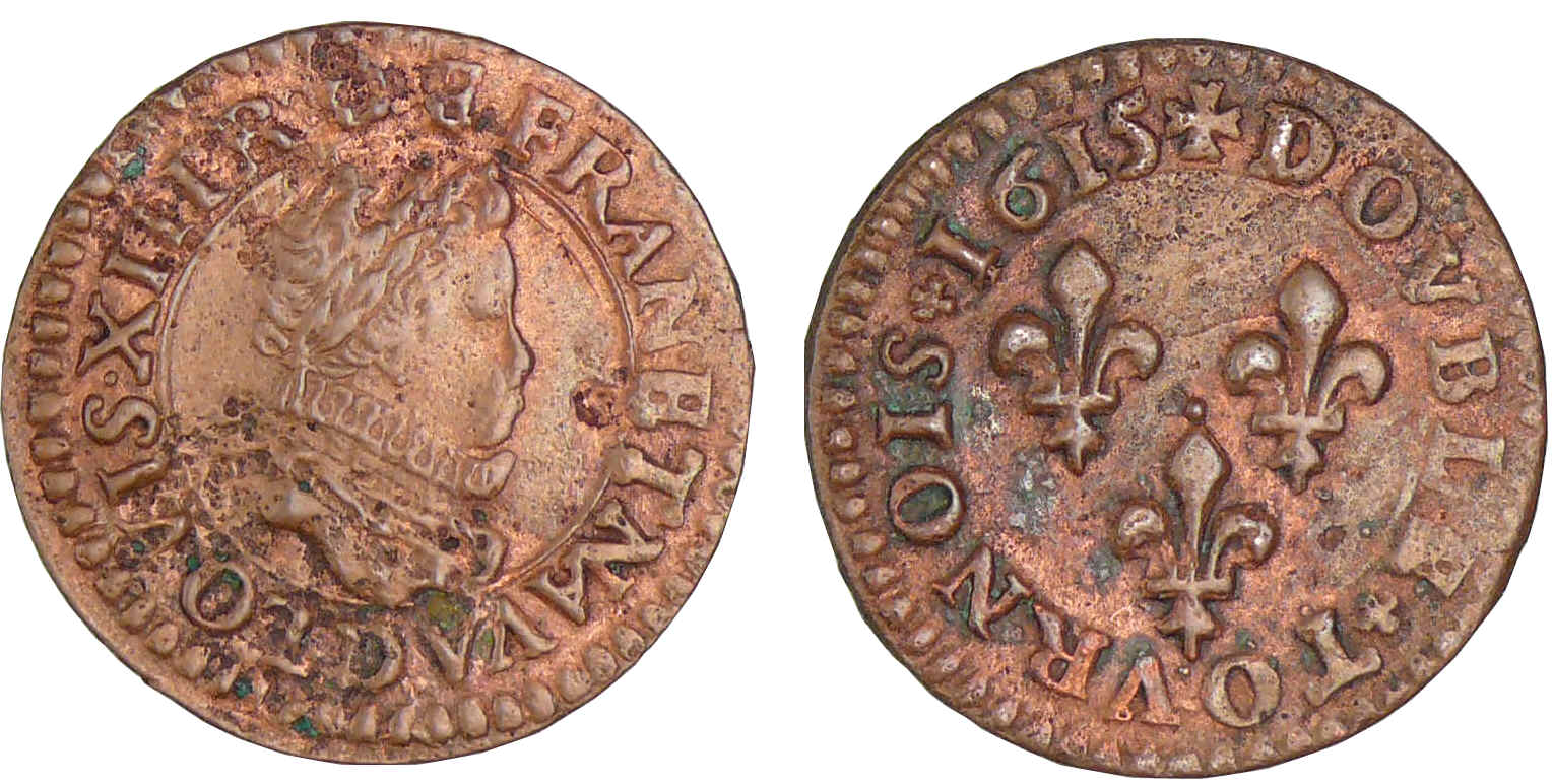 / Louis XIII – Double tournois enfantin – 1615 D (Lyon)