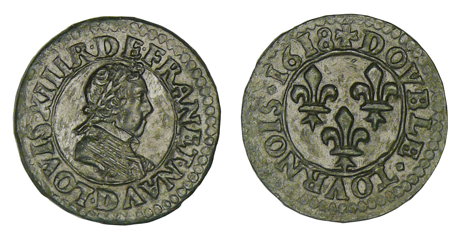 R/ + DOVBLE. TOVRNOIS. (millésime). Trois lis.