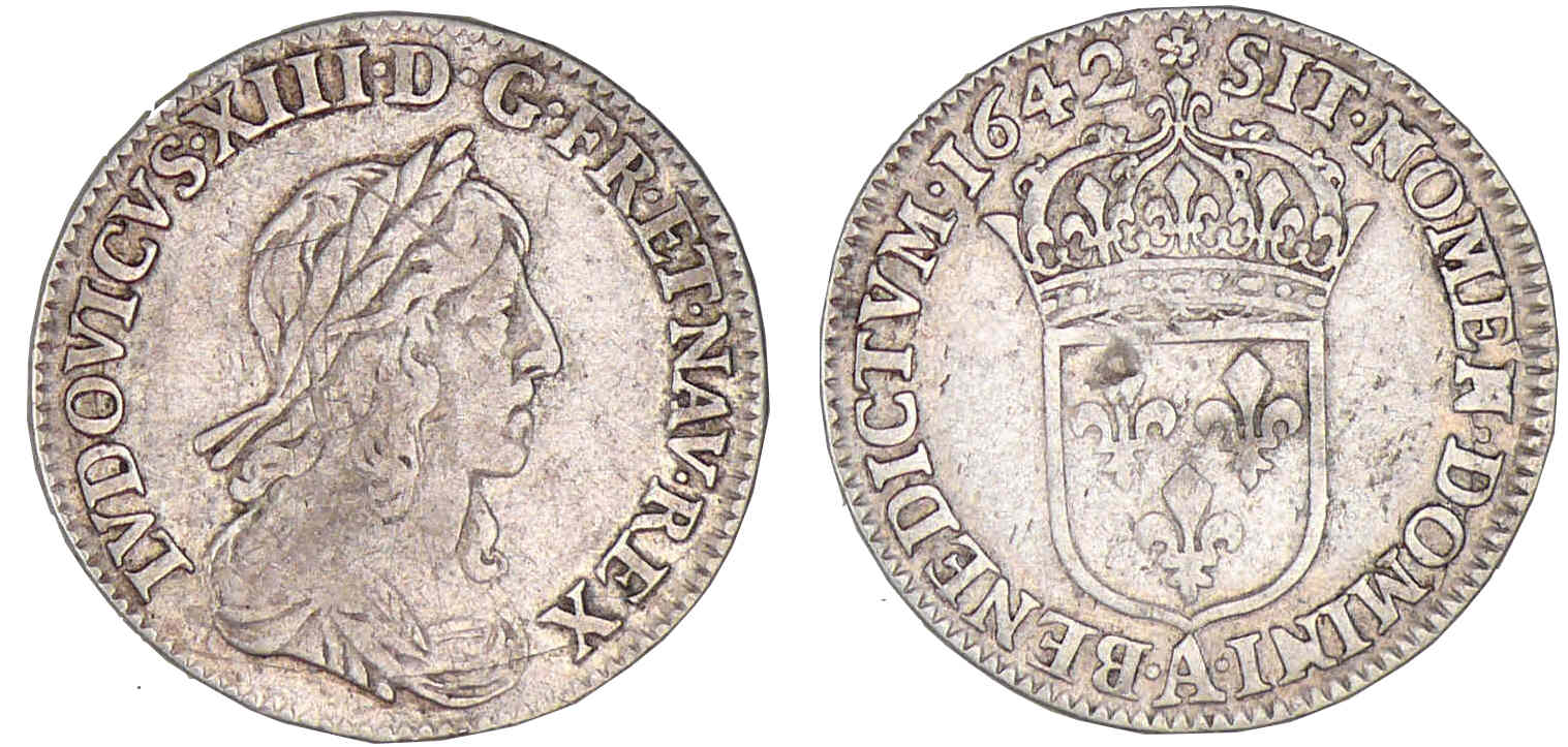 / Louis XIII – Douzième d’écu – 2ème poinçon – 1642 rose A (Paris)