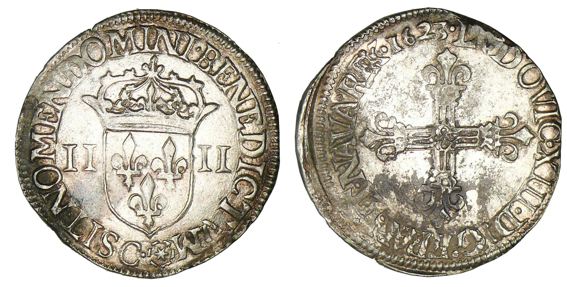 R/ SIT NOMEN DOMINI BENEDICTVM (atelier). Ecu de France couronné.