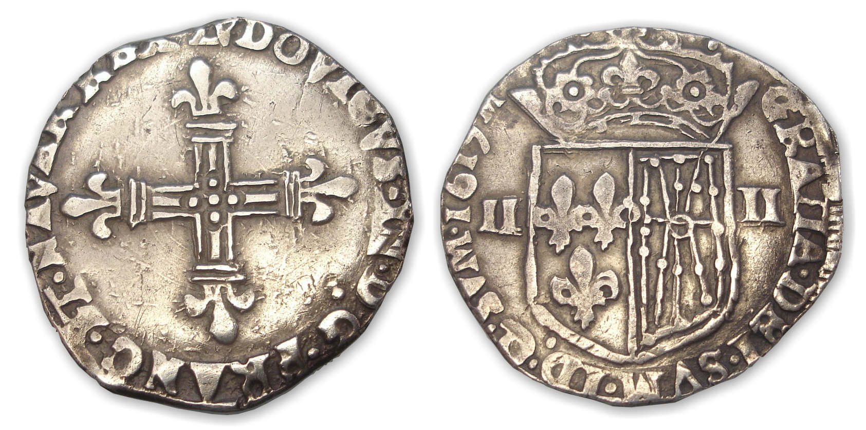 / Louis XIII – Quart d’écu de Navarre 1617 (St Palais)