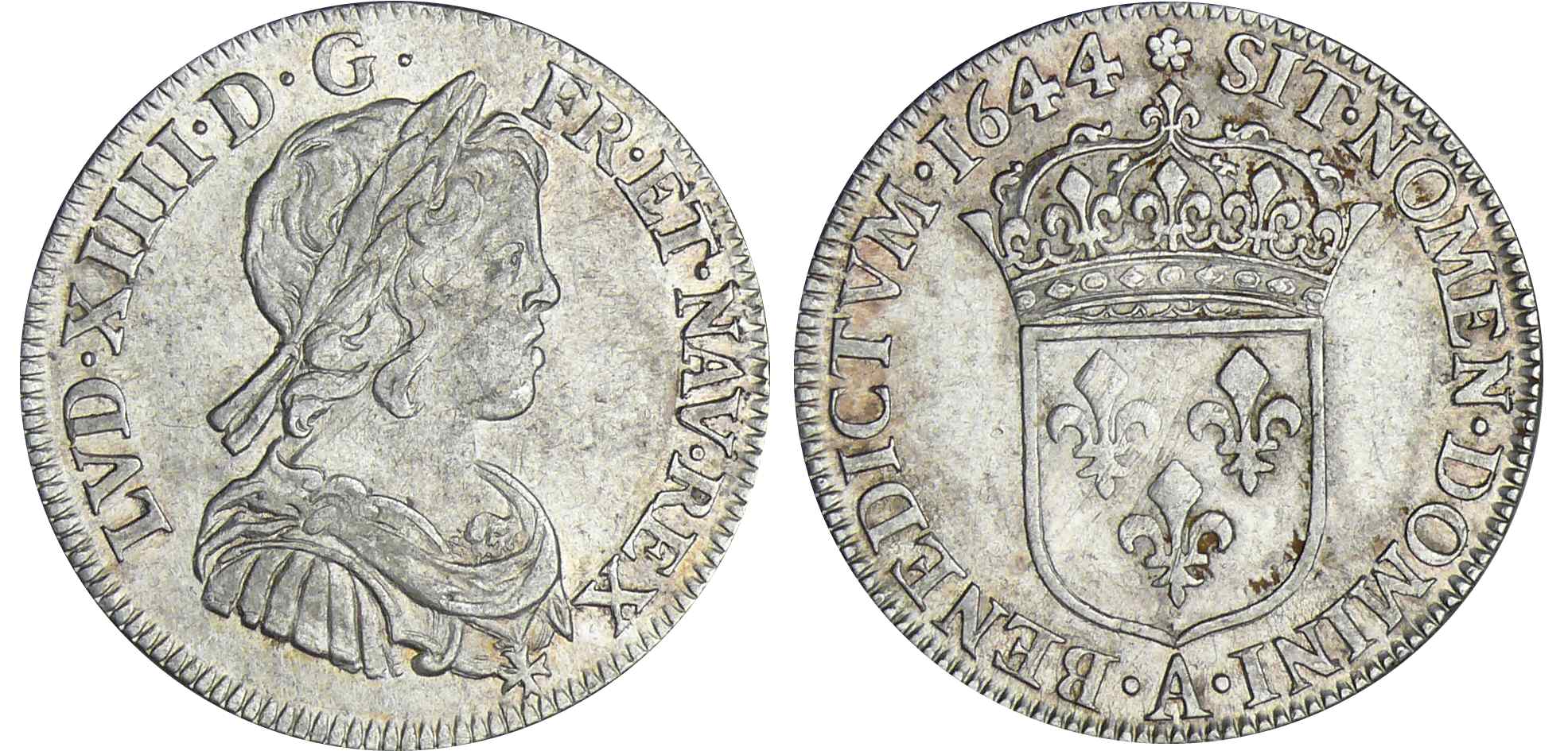 / Louis XIV – ¼ d’écu à la mèche courte – 1644 A (Paris) rose