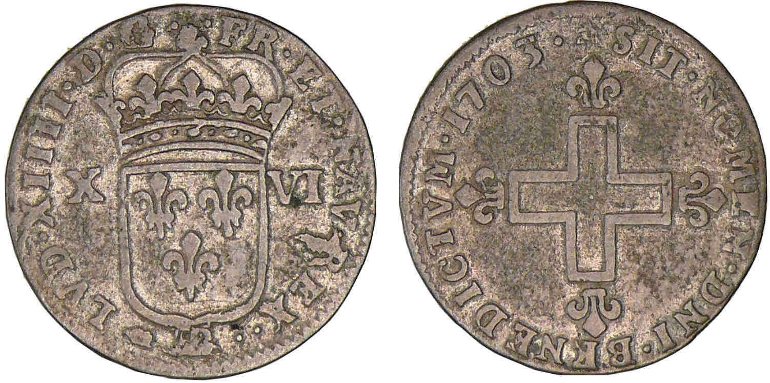 / Louis XIV – 16 deniers de Strasbourg – 1703 BB (Strasbourg)