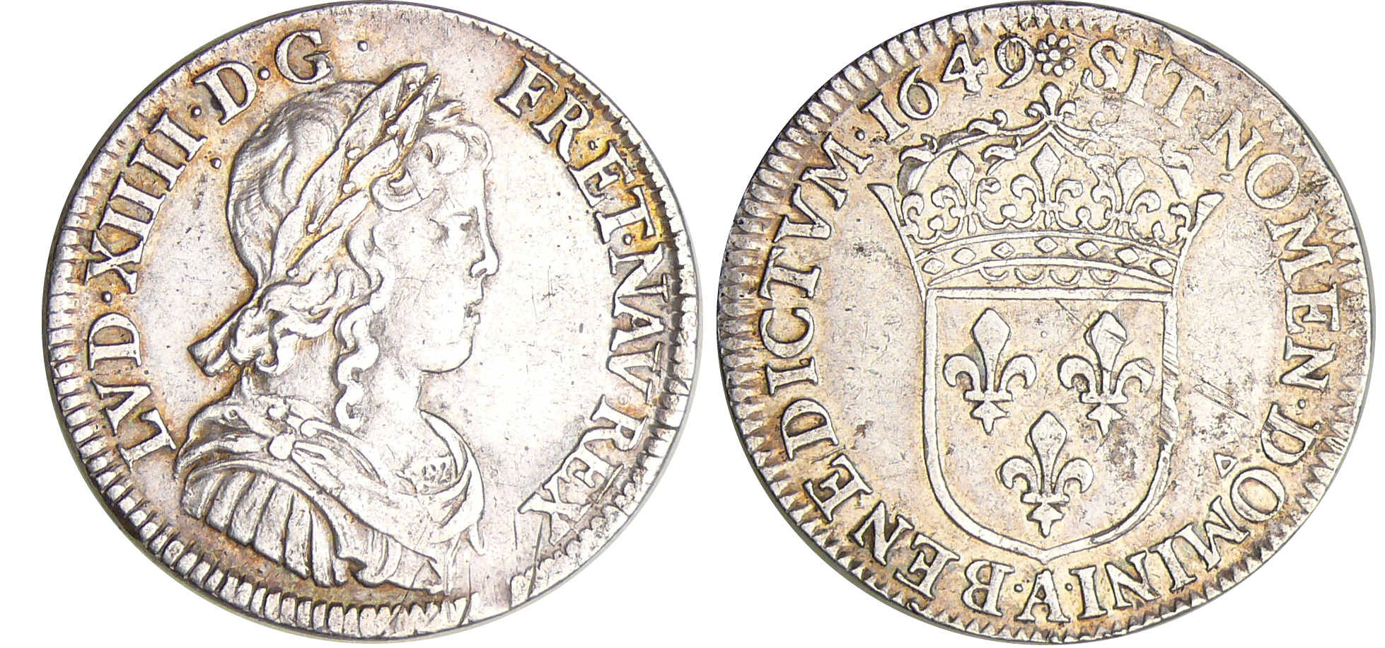 Louis XIV (1643-1715) – ¼ d’écu à la mèche longue – 1649 A (Paris)