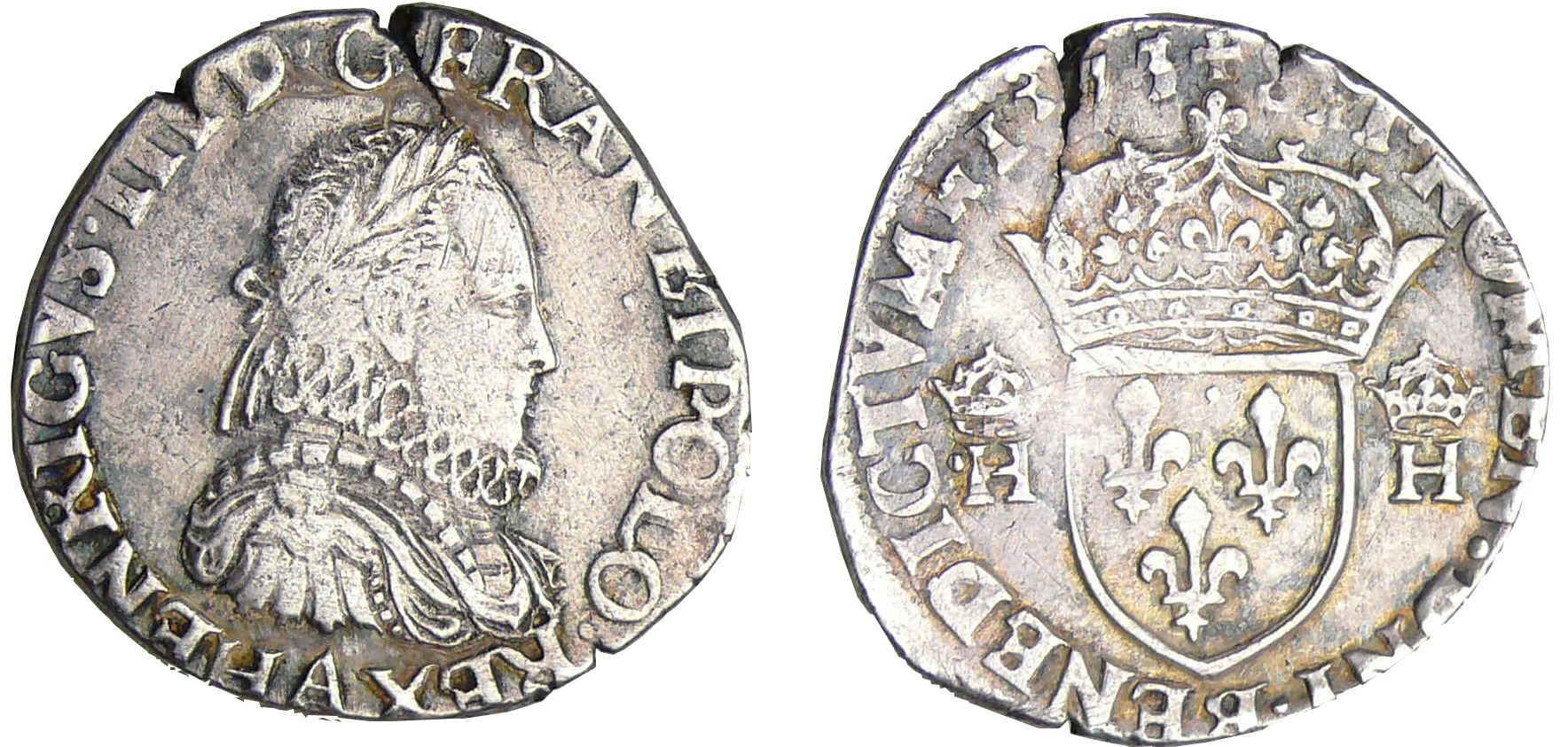R/ + SIT NOMEN DOM BENEDIC. Ecu de France couronné et accosté de deux H couronnés.