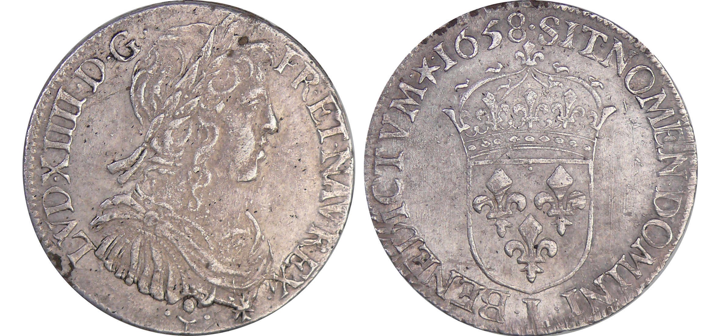 / Louis XIV (1643-1715) – ½ écu à la mèche longue – 1658 L (Bayonne)