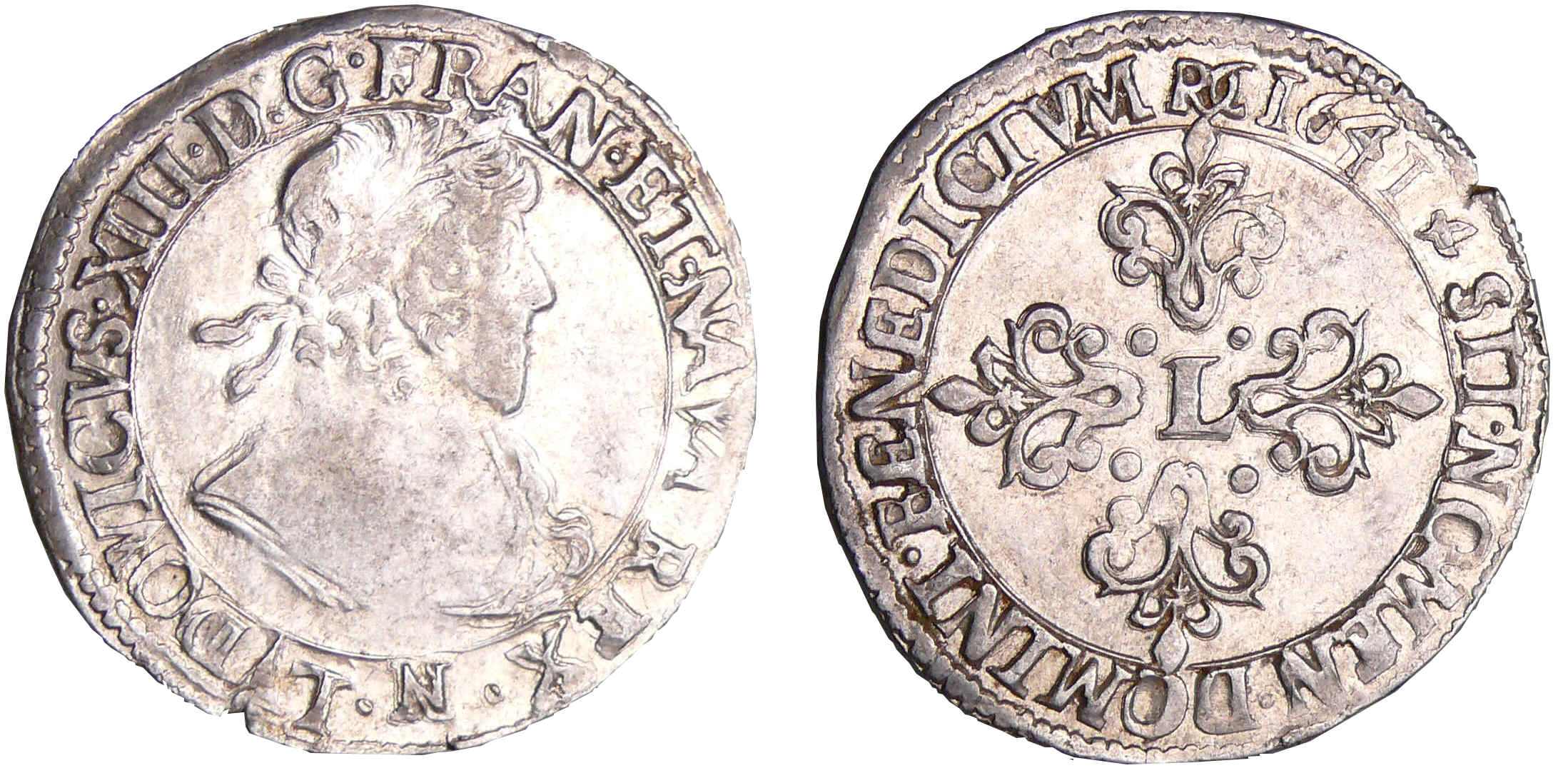 / Louis XIII (1610-1643) – ½ franc au buste juvénile, tête laurée, col rabattu – 1641 N (Montpellier)