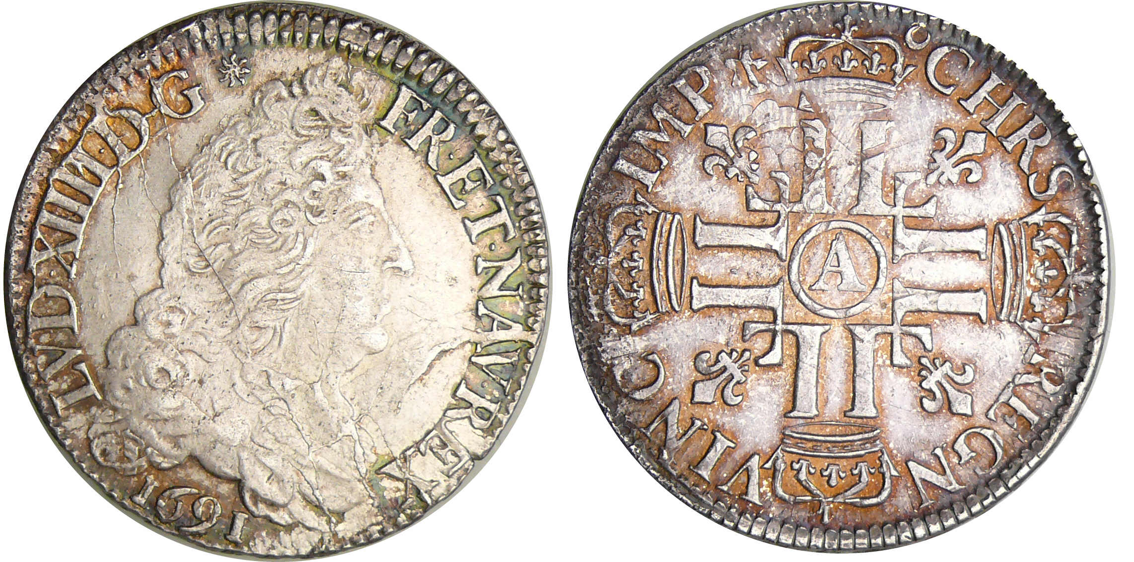 Louis XIV (1643-1715) – ½ écu aux 8 L, 1er type – 1691 A (Paris) flan réf