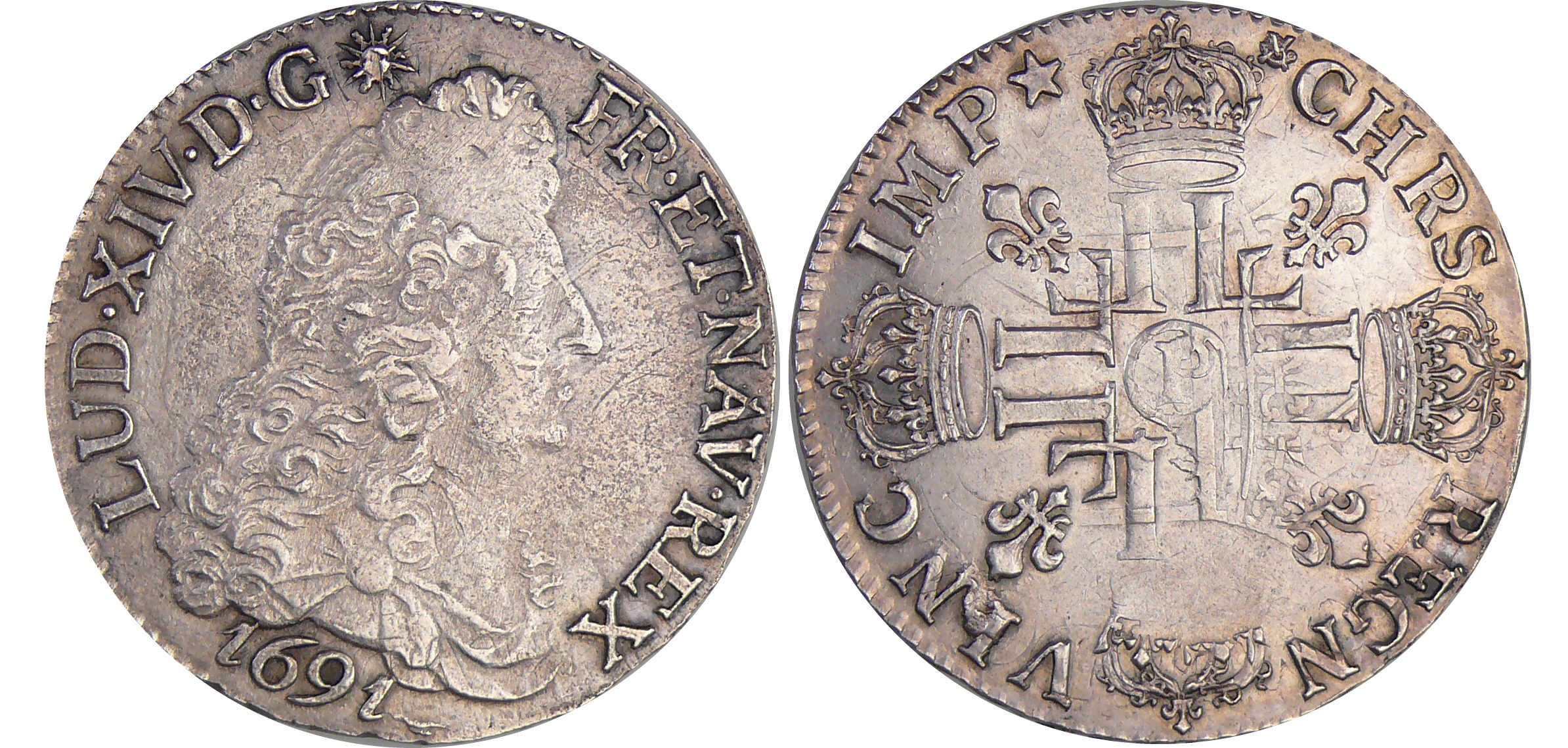 / Louis XIV (1643-1715) – ½ écu aux 8 L, 1er type – 1691 P (Dijon) flan réf