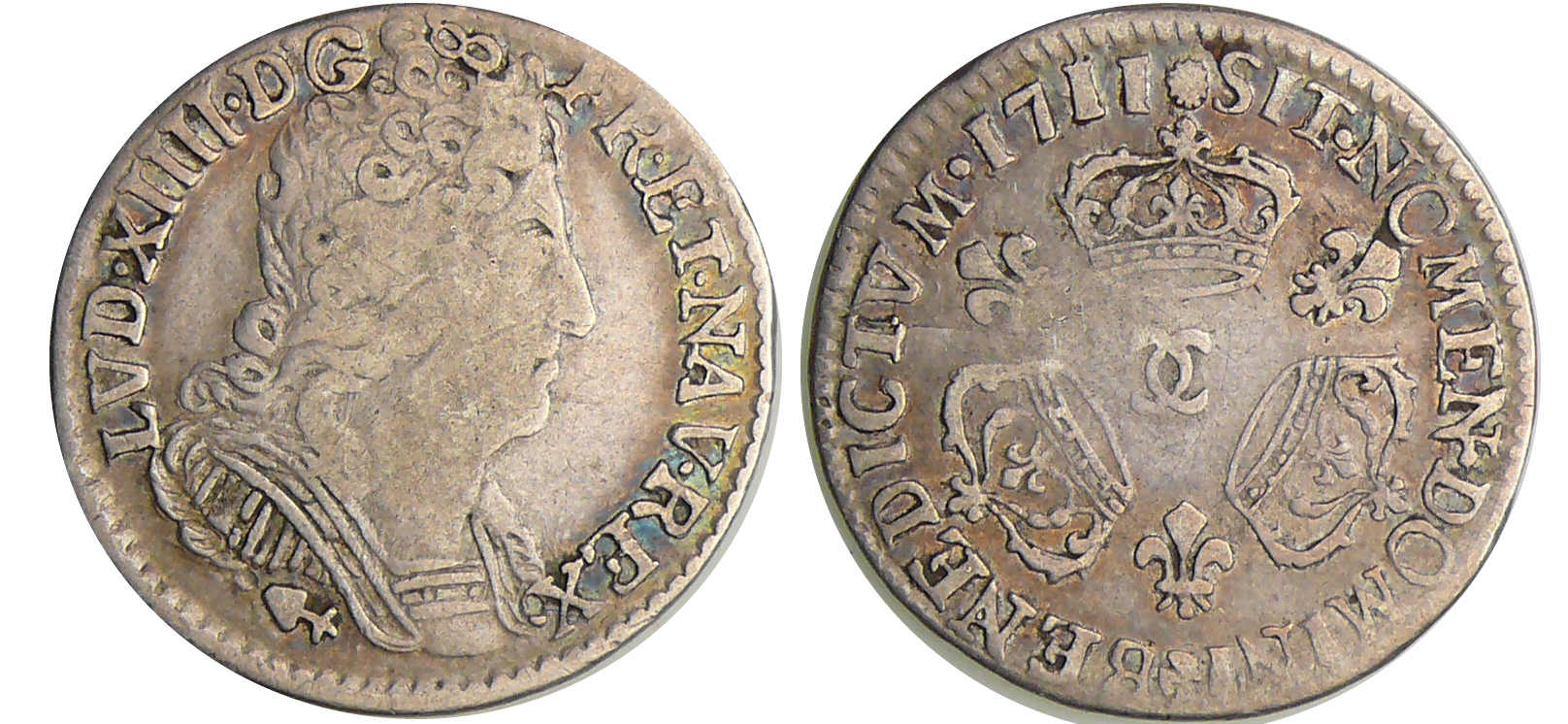 / Louis XIV (1643-1715) – 1/10 d’écu aux 3 couronnes – 1711 CC (Besançon)