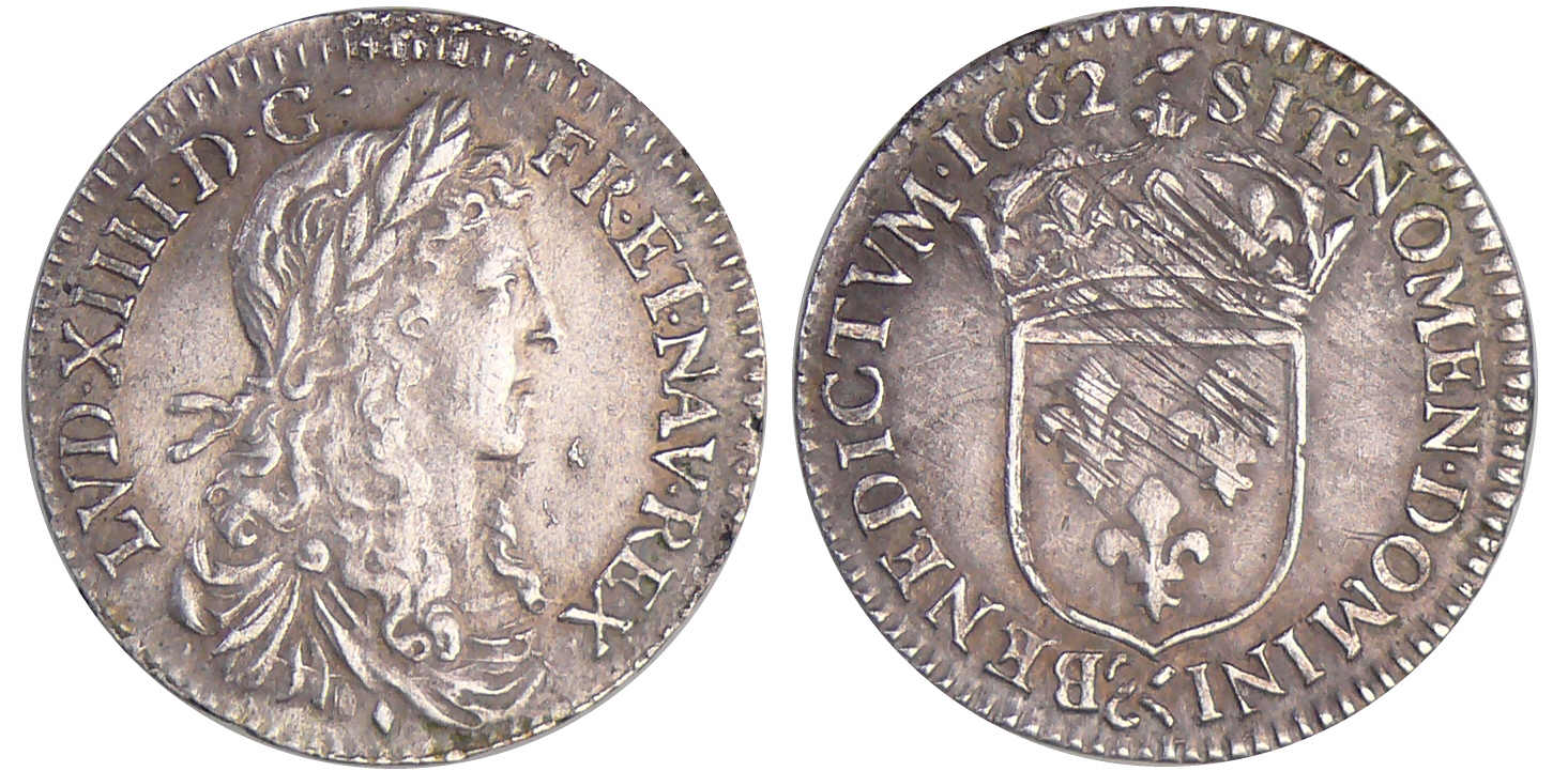 / Louis XIV (1643-1715) – 1/12 d’écu au buste juvénile – 1662 & (Aix)