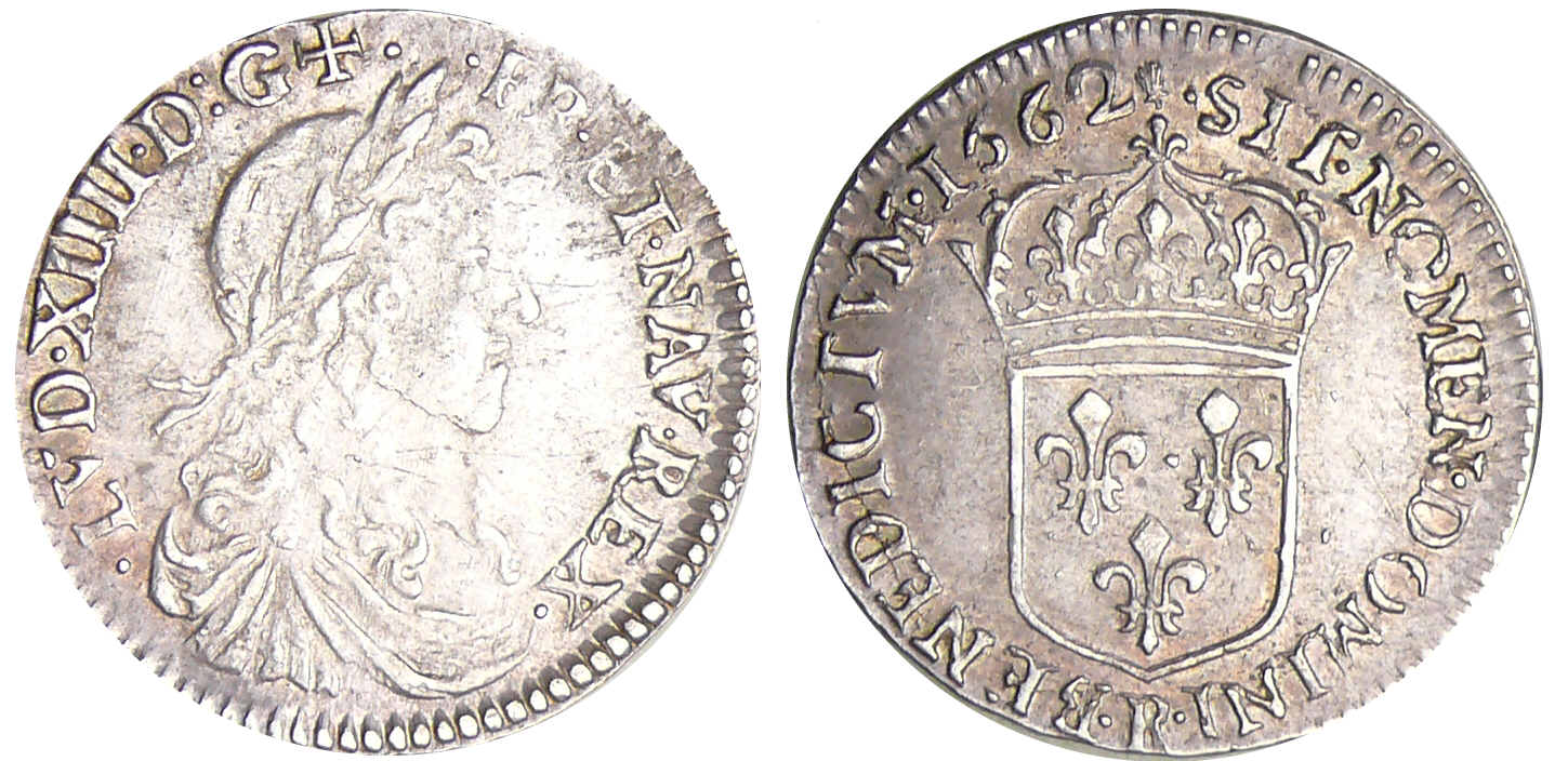 Louis XIV (1643-1715) – 1/12 d’écu au buste juvénile – 1662 R (Villeneuve Saint Andrè lez Avignons)