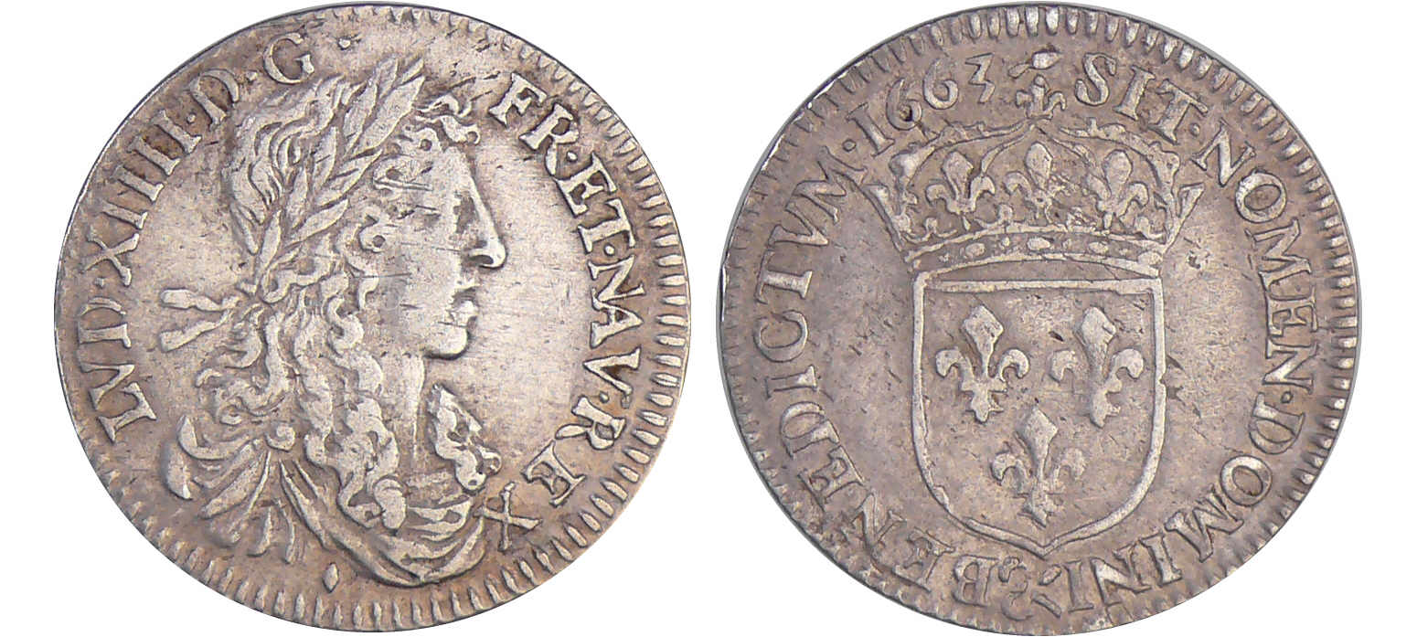 Louis XIV (1643-1715) – 1/12 d’écu au buste juvénile – 1663 & (Aix)