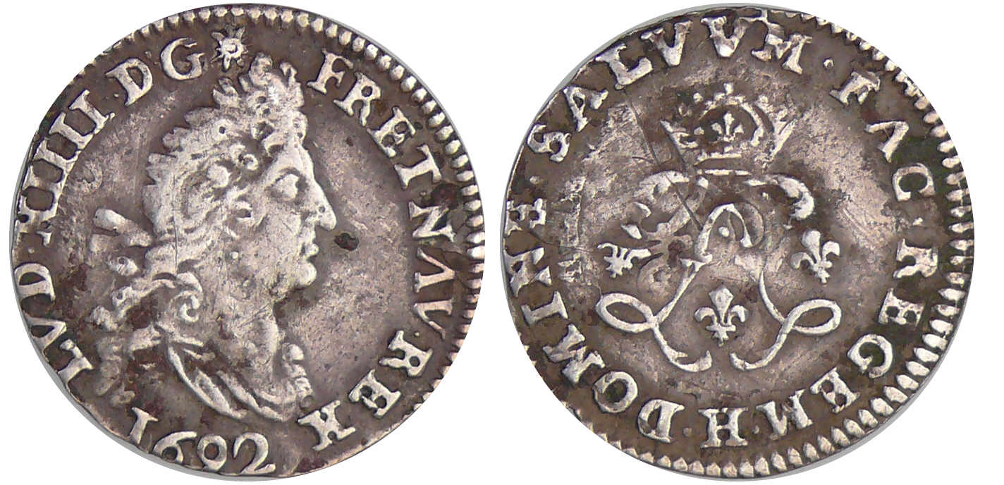 / Louis XIV (1643-1715) – 4 sols aux 2 L – 1692 H (La Rochelle)