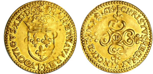 Louis XIII (1610-1643) – Ecu d’or frappe au marteau – 1615 B (Rouen)