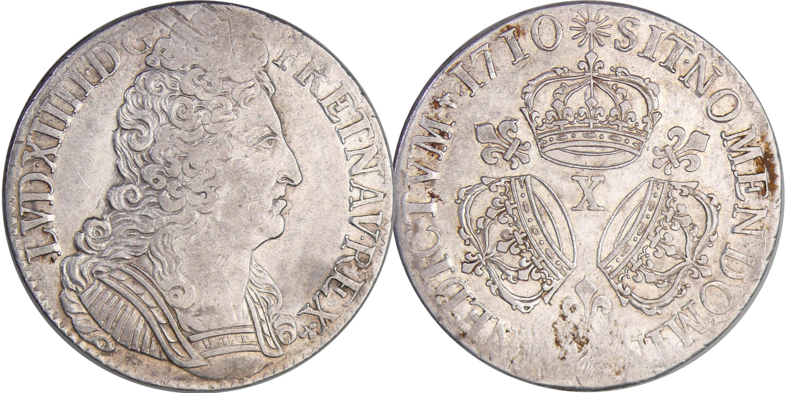/ Louis XIV (1643-1715) – Ecu aux 3 couronnes – 1710 X (Amiens)