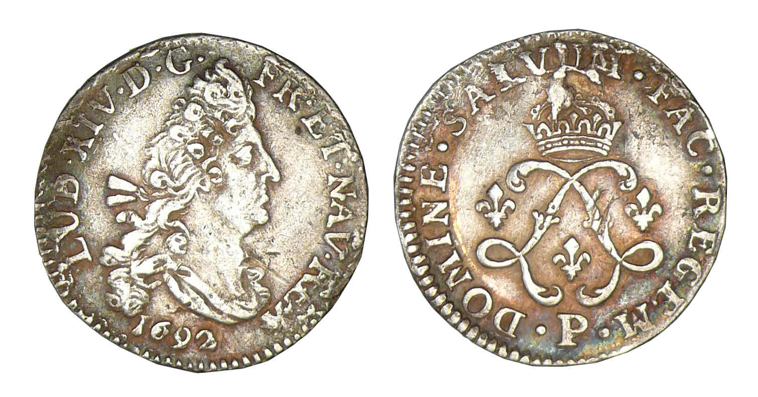 Louis XIV – 4 sols aux 2 L 1692 P (Dijon)
