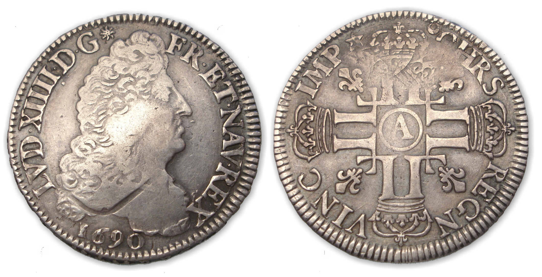 / Louis XIV – Demi-écu 8 L 1er type 1690 A (Paris)