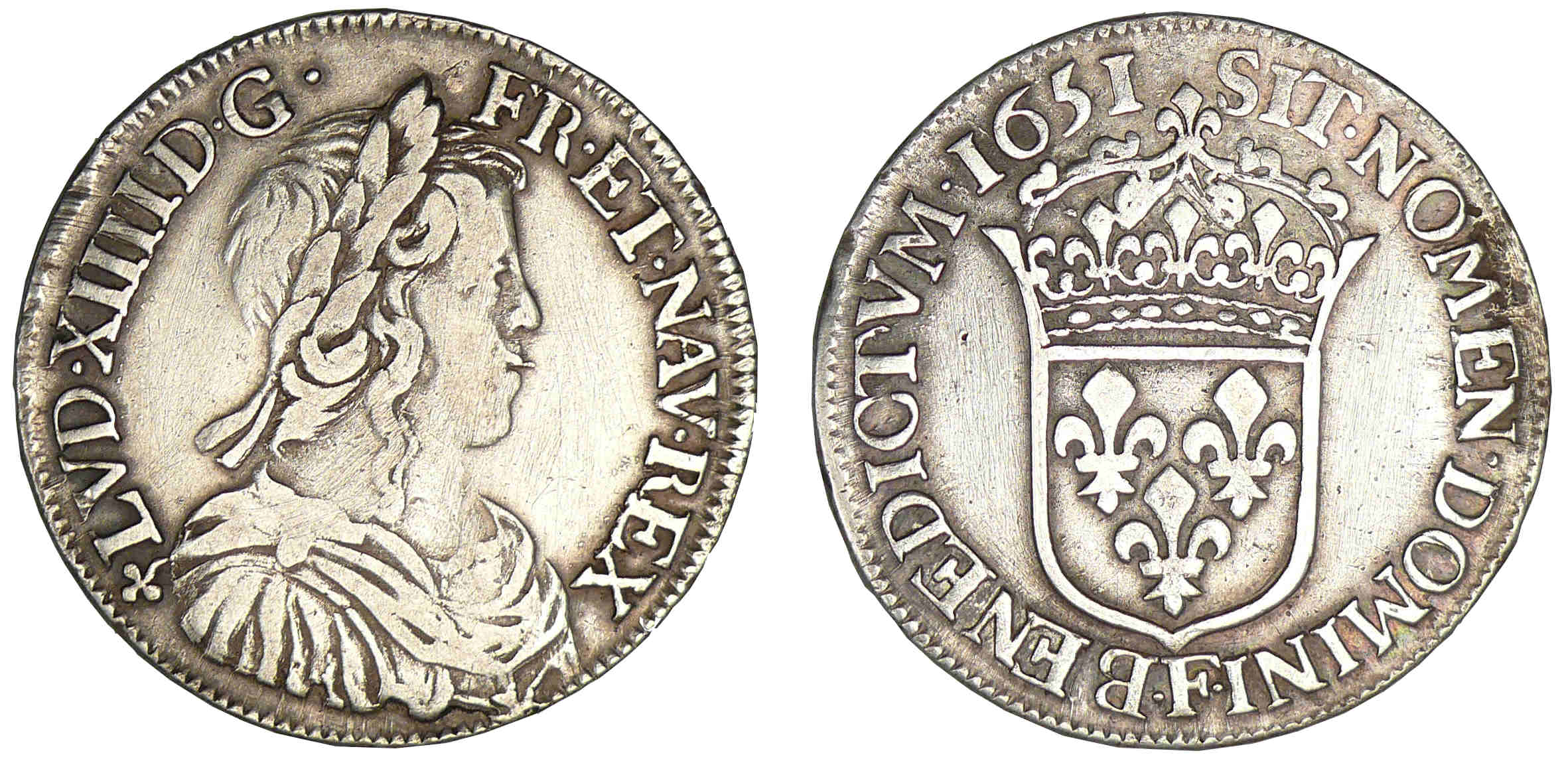 / Louis XIV – Demi-écu à la mèche longue 1651 F (Angers)