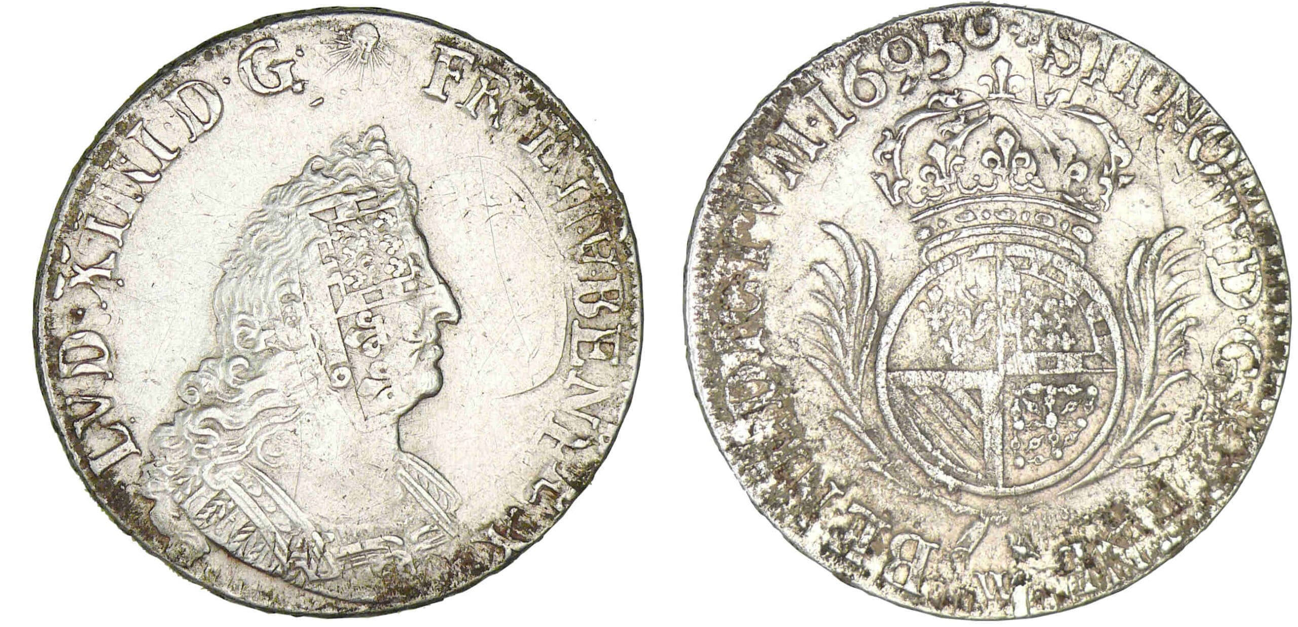 / Louis XIV – Demi-écu Carambole aux palmes 1695 W (Lille)