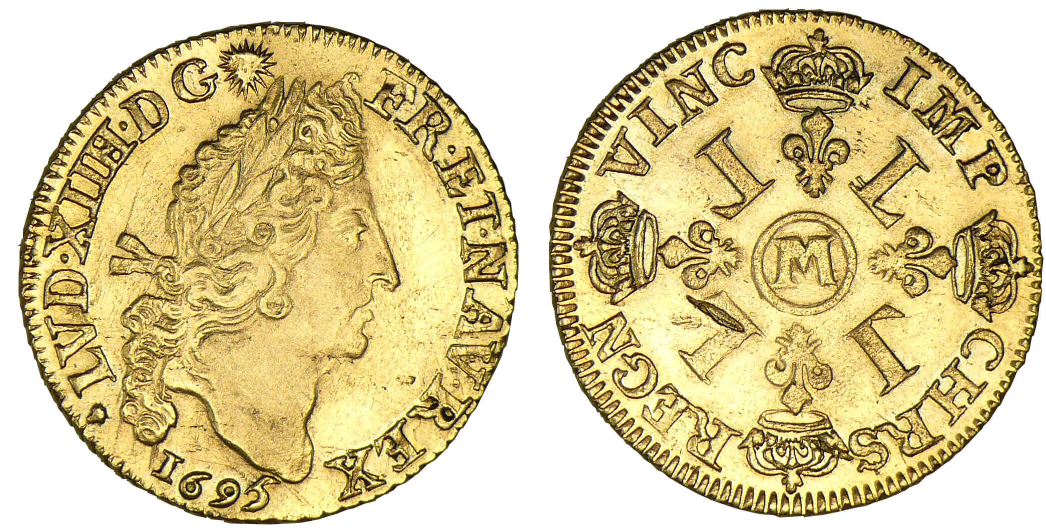 Avers : A/ LVD. XIIII. D. G. FR. ET. NAV. REX. Tête du roi lauré à droite.