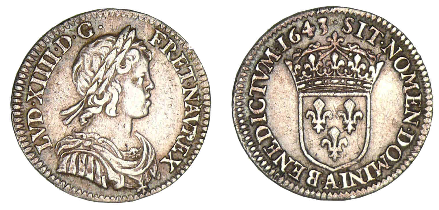 Louis XIV – Douzième d’écu à la mèche courte 1643 A (Paris)