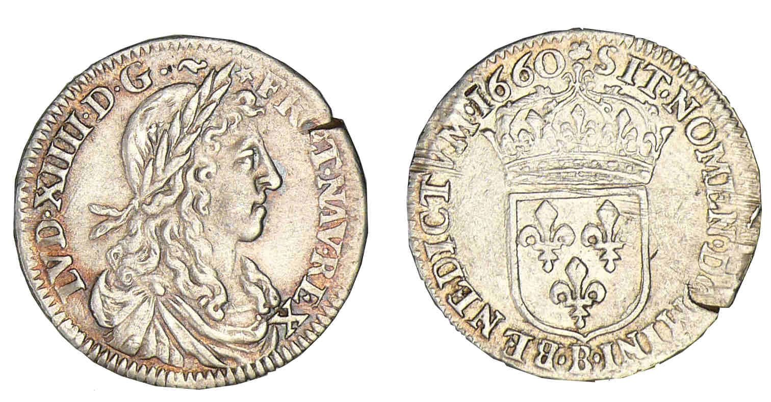 / Louis XIV – Douzième d’écu au buste juvénile 1660 B (Rouen)