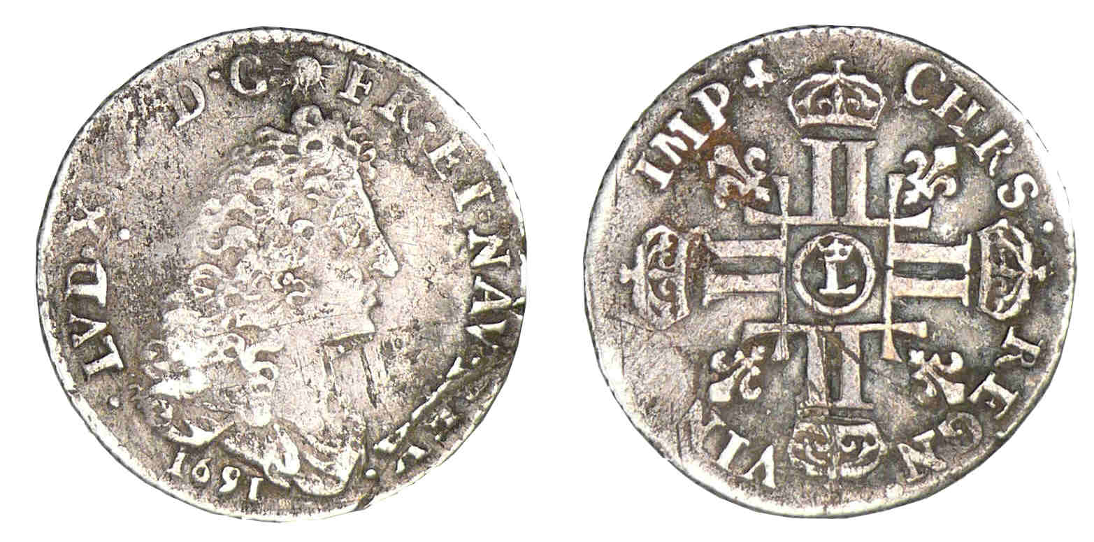 Avers : A/ LVD. XIIII. D. G. FR. ET. NAV. REX. Buste drapé à droite (millésime).