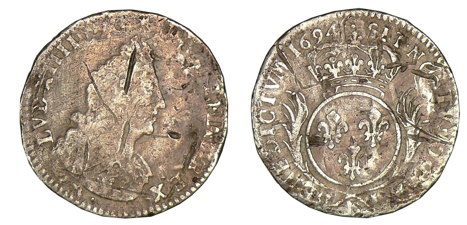 Avers : A/ LVD. XIIII. D. G. FR. ET. NAV. REX. Buste du roi drapé à droite.
