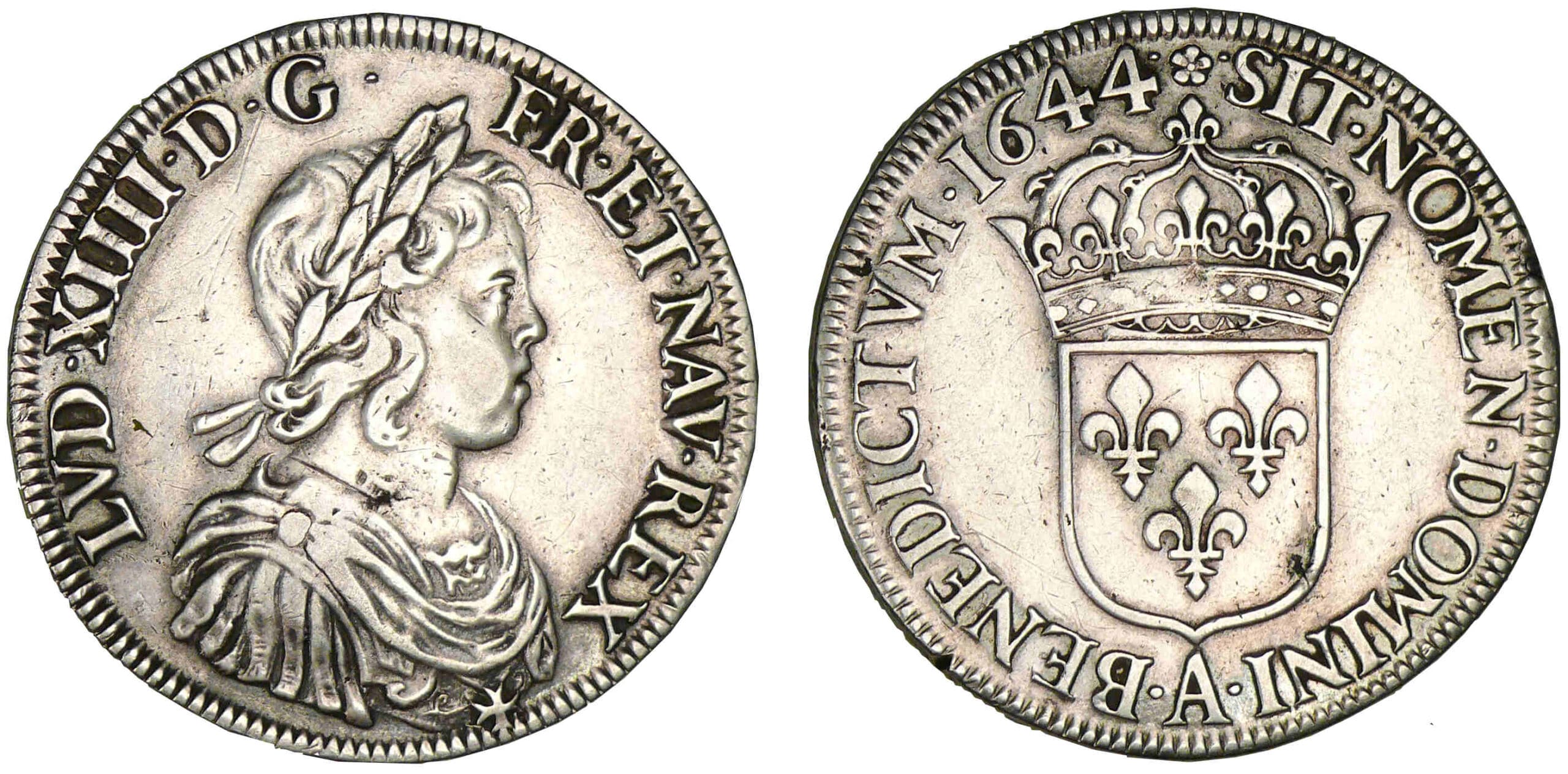Louis XIV – Ecu à la mèche courte 1644 (rose) A (Paris)